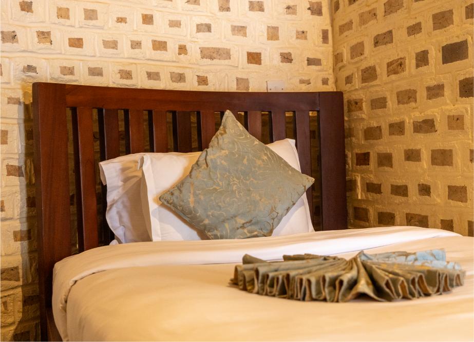 Unfurled across 100 sq. ft., our Single Cottage is the perfect tranquil abode for solo travelers. Exuding a rustic elegance, these cozy spaces feature signature grass-thatched roofs that harmonize with the natural surroundings. Inside, you will find thoughtful amenities including a plush bathrobe, bath slippers, and complimentary mineral water. With accessible laundry services and a dedicated 24-hour concierge, your independent Uganda getaway is completely effortless.