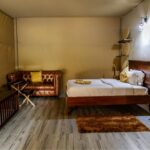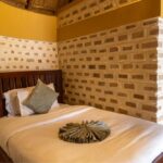 Sprawled over an inviting 225 sq. ft., the Double Cottage is a spacious retreat ideal for couples or small families. Fashioned with authentic brick walls and traditional thatched roofs, the space looks resplendent in warm, earthy tones. Enjoy generous room to relax, complete with modern comforts like high-speed Wi-Fi, a fully stocked mini-bar, and plush bathrobes, making it a premier choice for a relaxing boutique resort stay.