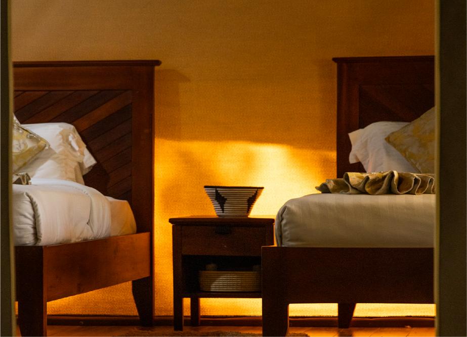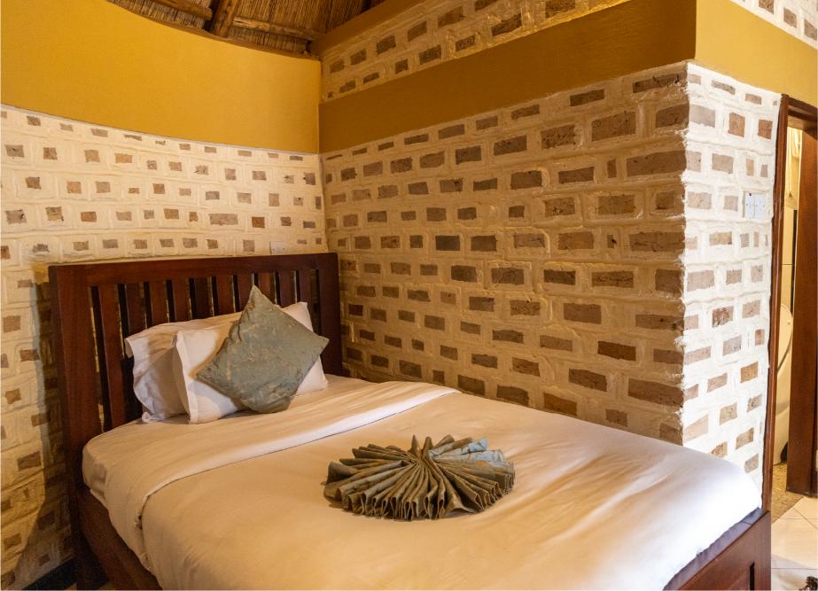 Unfurled across 100 sq. ft., our Single Cottage is the perfect tranquil abode for solo travelers. Exuding a rustic elegance, these cozy spaces feature signature grass-thatched roofs that harmonize with the natural surroundings. Inside, you will find thoughtful amenities including a plush bathrobe, bath slippers, and complimentary mineral water. With accessible laundry services and a dedicated 24-hour concierge, your independent Uganda getaway is completely effortless.